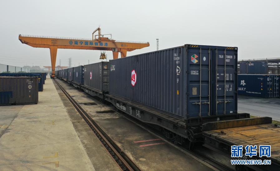 当日,2021年广西首趟重型机械中欧班列从南宁国际铁路港出发,开往哈萨克斯坦。这趟中欧班列搭载着49个集装箱,装载广西建工集团建筑机械制造有限责任公司的重型机械,沿着“南宁—西安(新筑)—努尔苏丹”新线路开行,总行程约5031公里,预计运行13天。
