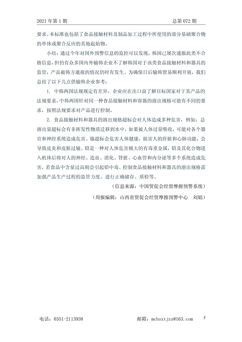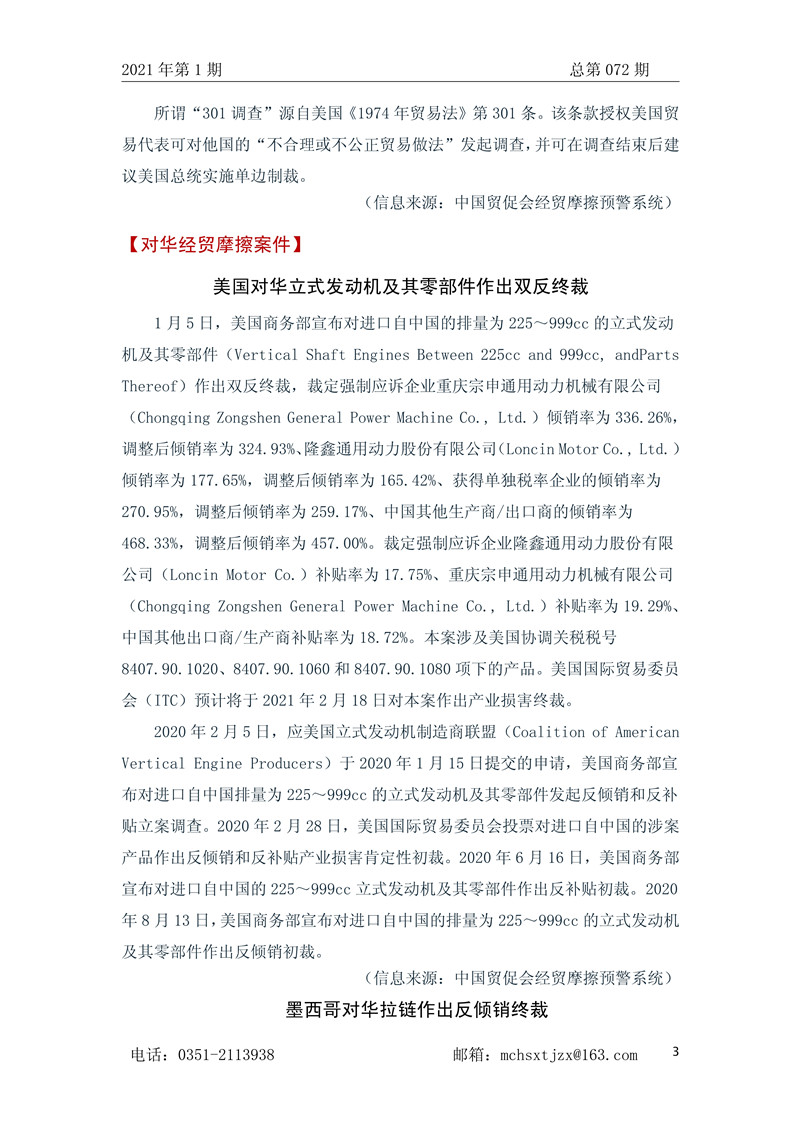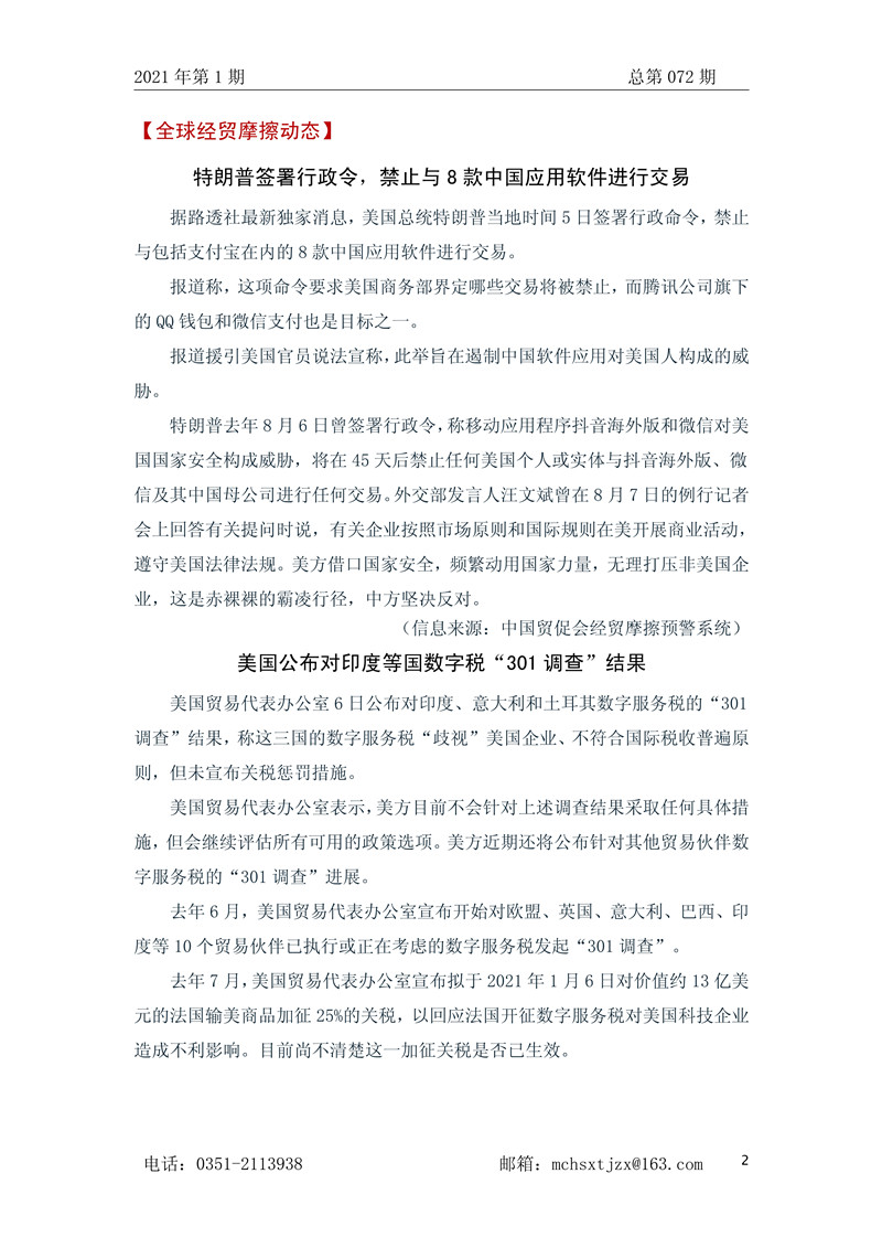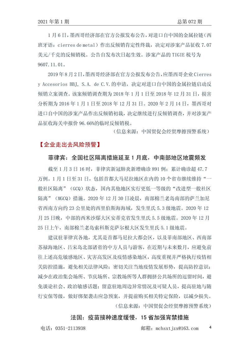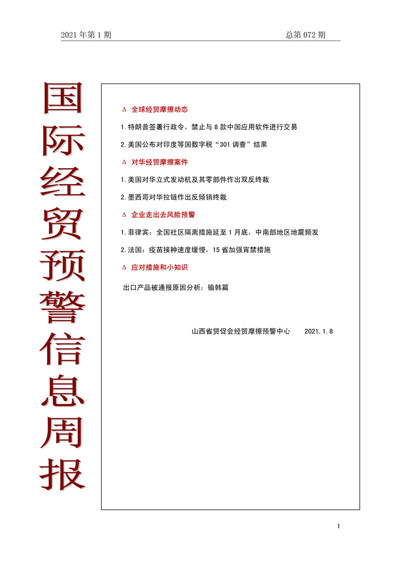 山西省贸促会国际经贸预警信息周报2021年第1期